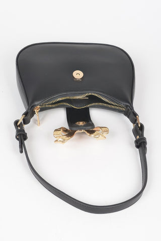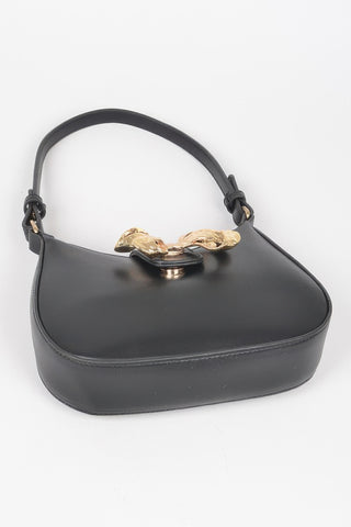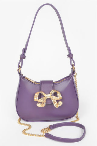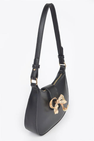 Product Description: Chic and compact, the Vegan Leather Small Hobo Bag with Metal Ribbon is the perfect blend of elegance and everyday ease. Crafted from smooth polyurethane, this mini hobo features a softly structured silhouette and is accented with a polished metal ribbon detail for a touch of shine. The size is ideal for carrying just the essentials, making it a stylish choice for day-to-night wear. Whether paired with casual outfits or dressier looks, this bag adds refined flair to any ensemble.