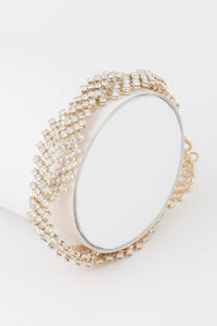Product Description: Twisted Rhinestone Bracelet brings soft sophistication with a modern edge. Featuring a delicately twisted silhouette, it catches the light from every angle while remaining easy to wear. The integrated rhinestones offer a subtle sparkle that complements both casual and elevated outfits. Flexible and lightweight, it moves with you throughout the day while maintaining its shape. Whether stacked with other pieces or worn solo, it delivers quiet glamour and a timeless finish. Its seamless fit ensures slip-on ease without compromising comfort. A refined staple that pairs effortlessly with any wardrobe.