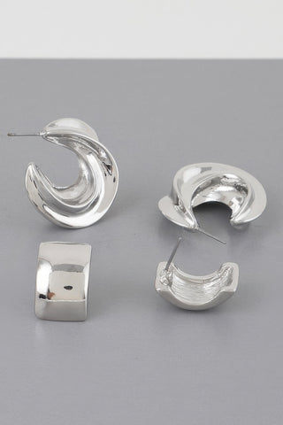 Two Pair Mini C Hoop Earrings Set Sale