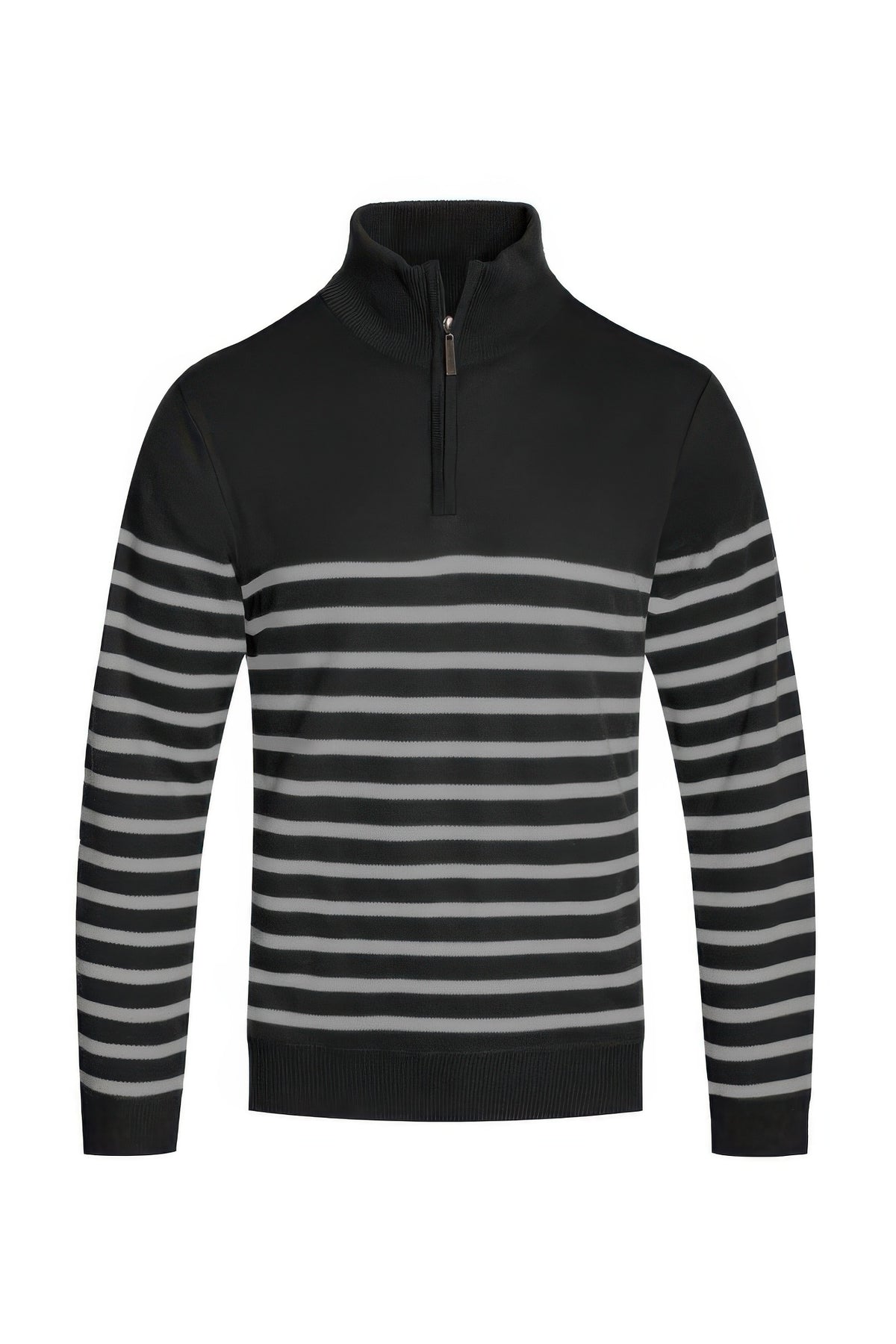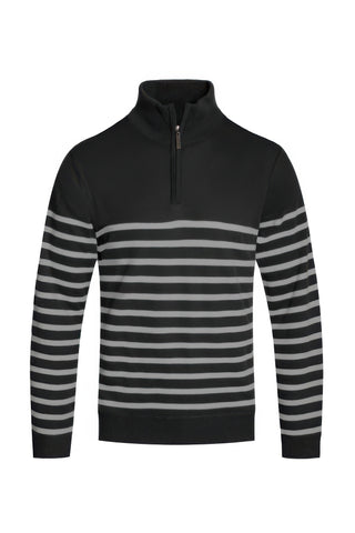 Design: The jacket features a sporty 1/4 zipper closure at the collar, allowing for adjustable comfort, and the striped two-tone design adds a stylish edge to a classic silhouette. ��