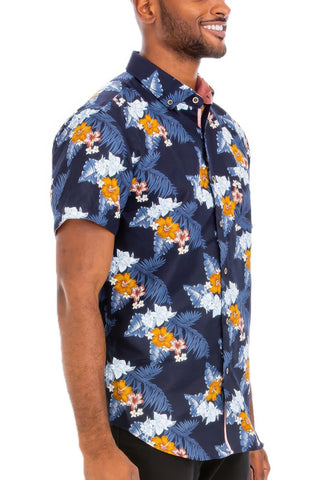 Hawaiian Print Button Down Shirt