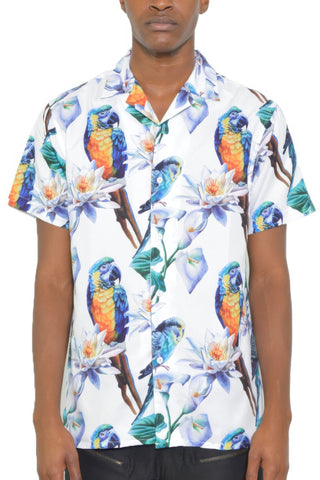 Mens Tucan Parrot Print Resort Button Down Shirt