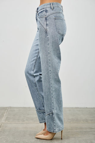 Product Description: Add a refined touch to your denim collection with these mid-rise straight-leg jeans featuring sleek piping detail. The tailored silhouette offers a clean, structured look, enhanced by the subtle trim that runs along the seams for a polished finish. Made from a durable cotton blend with a hint of stretch, these jeans provide comfort without compromising shape. A mid-rise waist and classic zipper fly ensure a timeless fit, while 5-pocket styling keeps things functional and versatile. Ideal for dressing up or down, they bring a fresh twist to everyday denim.