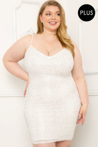 Make a statement and shine bright with our Rhinestone Body Plus Size Mini Dress in Ivory. Add it to your cart now and experience the perfect blend of glamour and comfort!