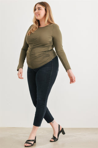Imported 1XL.2XL.3XL Olive, solid color, ruched, long sleeves, crew neckline, stretchy, unlined, not see through, casual, cute, stylish 95% Polyester 5% Spandex Olive TSH