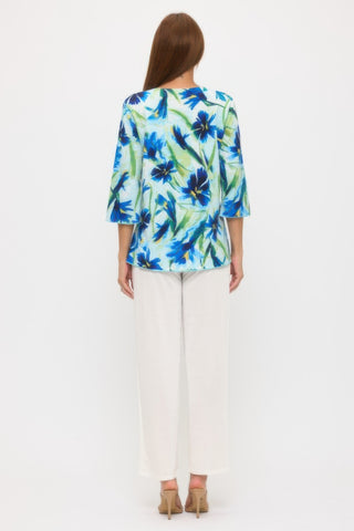 Product Description: Elevate your everyday look with the Plus Size Venechia Pleated Merrow Top. This beautifully printed top features a round neckline, quarter sleeves, and soft pleats that flatter your shape. The lightweight polyester-spandex blend offers stretch and breathability, keeping you comfortable all day long. Its merrow-stitched edges add a delicate finish that enhances its feminine charm. Made in the USA, this top combines fashion-forward design with effortless wearability.