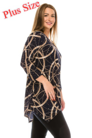 Product Description: Add a touch of shimmer to your everyday look with this plus size glitter V-neck top. The binding neckline offers structure and polish, while the soft, stretchy fabric ensures a flattering and comfortable fit. Quarter-length sleeves make it a great choice across seasons, and the subtle glitter finish brings just the right amount of shine. Proudly made in the USA, it's a style-forward piece you’ll reach for again and again.