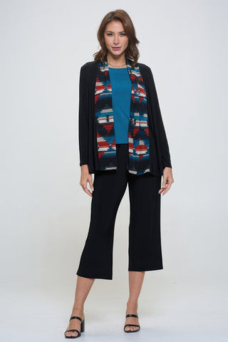 Product Description: Sophisticated yet easy to wear, the Plus Size Mesh Romance Trim Jacket features a flowy silhouette enhanced by a romantic mesh edge. The printed panel adds a stylish twist, while the ITY knit delivers stretch and structure. With sizes up to 3XL and easy-care fabric, this jacket offers fashion-forward confidence with everyday comfort.