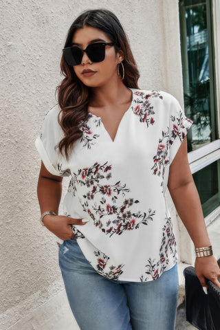 Plus Size Floral Print V Neck Loose Blouse Sale