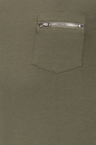 Imported S.M.L SHORT SLEEVE ROUND NECK w/ZIPPER POCKET BACK STRAP COTTON SPANDEX JERSEY TOP 95% Cotton 5% Spandex Olive Green ACT