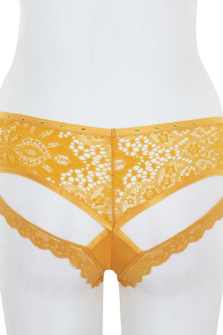 ImportedS.M.L.XLYoumita Cut Out Lace Back HipsterGold Metallic Stud DetailStretchy Lace Leg Band85% Nylon / 15% SpandexGolden GlowBUL
