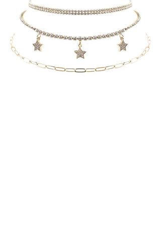 Rhinestone Star Charm 3 Layered Necklace - Gold