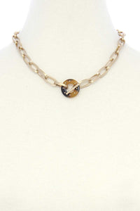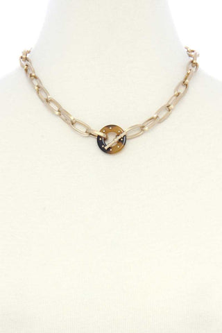 Acetate Ring Oval Link Toggle Clasp Necklace - Gold