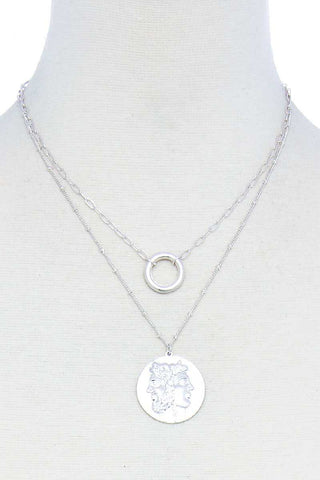 Imported FASHION GREEK FACE PENDANT NECKLACE Gold.Silver FBJ