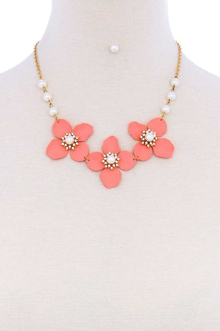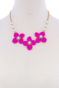 ImportedSTYLISH FLOWER AND PEARL NECKLACE SETPink.Fuchsia.Turquoise FBJ