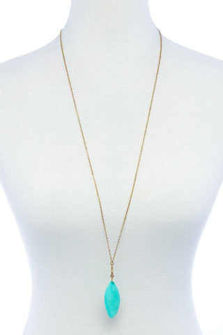 Imported FASHION OVAL STONE PENDANT LONG NECKLACE Brown.Mint.Pink.White.Grey FBJ