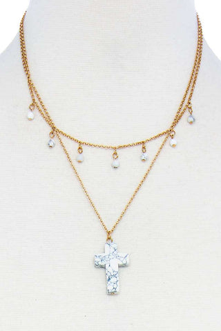 Imported DOUBLE LAYERED CROSS PENDANT CHAIN NECKLACE Brown.Mint.White.Grey FBJ