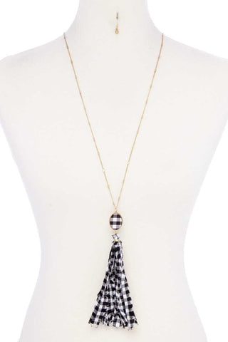 Checkered Pattern Fabric Tassel Necklace - Yellow