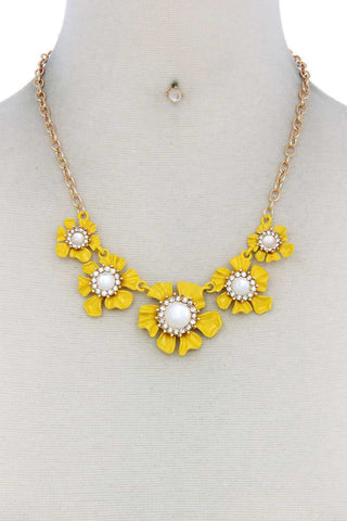 Imported FLORAL PEARL BEAD NECKLACE Coral.Yellow.Cream.Red FBJ