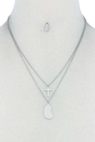 ImportedSTYLISH DOUBLE LAYER CROSS AND MARY NECKLACE AND EARRING SETGold.SilverSYM