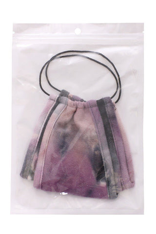 Imported One Size�� TIE DYE TRIFOLD REUSABLE FACE MASK Comfortable Fit Skin friendly cotton lining Hand wash recommended Optional inside filer pocket * Filter not included 96% Polyester 4% Rayon�� Purple/Black SYM
