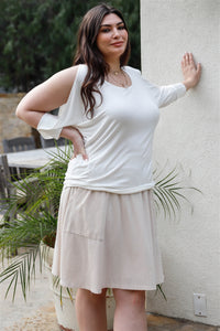 Plus Off-white Cold Shoulder Midi Sleeve Top Sale