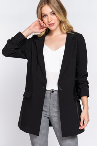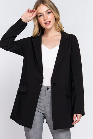 Long Sleeve Notched Single-breasted Tunic Blazer - S