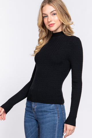 Inform when this item available: Long Slv Mock Neck Rib Sweater - S