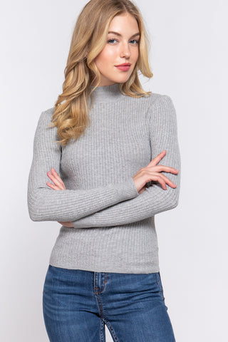 Imported S.M.L LONG SLV MOCK NECK RIB SWEATER 49% Viscose 28% Polyester 23% Nylon Heather Grey ACT