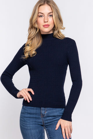 Imported S.M.L LONG SLV MOCK NECK RIB SWEATER 49% Viscose 28% Polyester 23% Nylon Ink Navy ACT