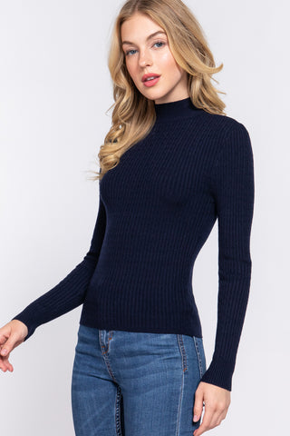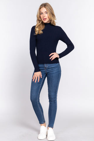 Inform when this item available: Long Slv Mock Neck Rib Sweater - S