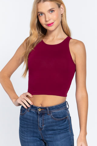 Imported S.M.L HALTER NECK CROP TOP 95% Polyester 5% Spandex Burgundy ACT