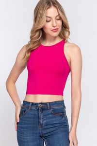 Imported S.M.L HALTER NECK CROP TOP 95% Polyester 5% Spandex Magenta ACT