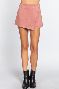 Imported S.M.L FRONT WRAP FAUX SUEDE SHORT PANTS 95% Polyester 5% Spandex Rose Pink ACT