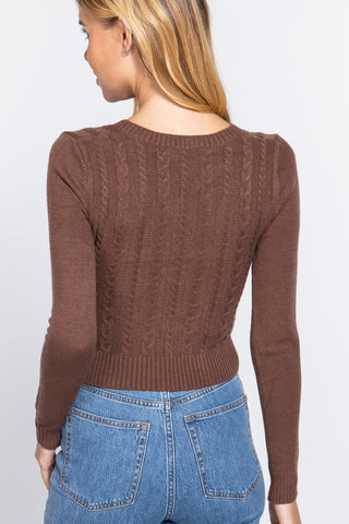 ImportedS.M.LLONG SLEEVE V-NECK CABLE SWEATER49% Viscose 29% Polyester 22% Nylon Brown ACT