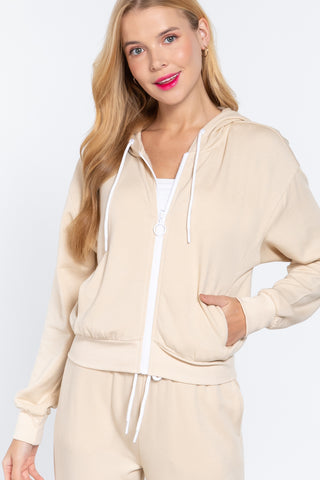 Imported S.M.L LONG SLEEVE HOODIE w/DRAWSTRING ZIP UP INNER FLEECE FRENCH TERRY JACKET 48% Rayon 48% Polyester 4% Spandex Bone ACT