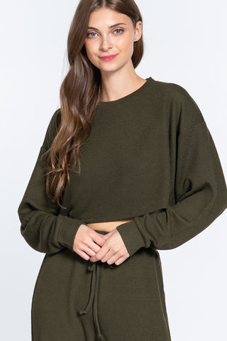 Imported S.M.L. LONG DOLMAN SLEEVE CREW NECK HACCI CROP TOP 95% Polyester 5% Spandex Olive ACT
