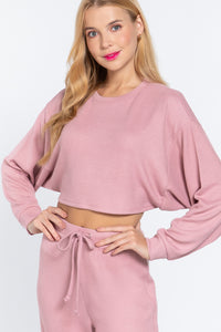 Imported S.M.L. LONG DOLMAN SLEEVE CREW NECK HACCI CROP TOP 95% Polyester 5% Spandex Pink ACT