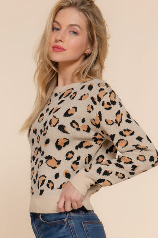 Upgrade your wardrobe with our Long Sleeve Crew Neck Animal Jacquard Sweater Top in Beige/Camel. Add it to your cart now and enjoy the perfect blend of fashion and comfort!