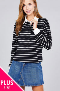Ladies fashion plus size long sleeve striped dty brushed shirts - 2XL