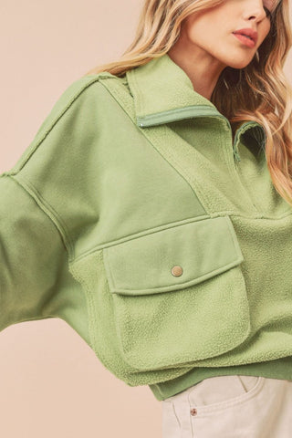 The Exposed Seam Half Zip Sweatshirt with Pockets is a trendy and practical choice for casual wear. Featuring exposed seams for added visual interest and a touch of uniqueness. The half-zip design offers versatility in styling and easy wearing. Complete with pockets for added functionality and a laid-back vibe.