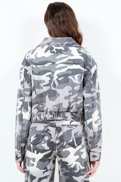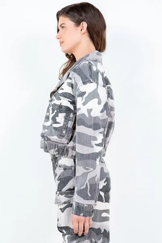 Camouflage Zip Up Cropped Rider Jackets are a trendy and fashion-forward choice for those looking to add a touch of edginess to their outfit. The camouflage print gives these jackets a bold and statement-making look, perfect for adding a pop of pattern to your ensemble. The zip-up closure provides convenience and a modern touch, making it easy to layer over various tops.