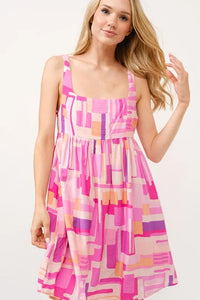 The geo printed square neck babydoll mini dress is a trendy and playful addition to your wardrobe. The square neckline adds a modern and chic touch to the dress. The geo print is edgy and eye-catching, perfect for making a statement. This babydoll mini dress is fun and flirty, making it ideal for a night out with friends or a casual day out. Pair it with ankle boots and a denim jacket for a cool and stylish look that will turn heads wherever you go.