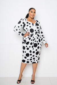 Imported IXL.2XL.3XL POLKA DOT DROP WAIST RUCHED MIDI DRESS 96% Polyester 4% Spandex Black Dot BBA