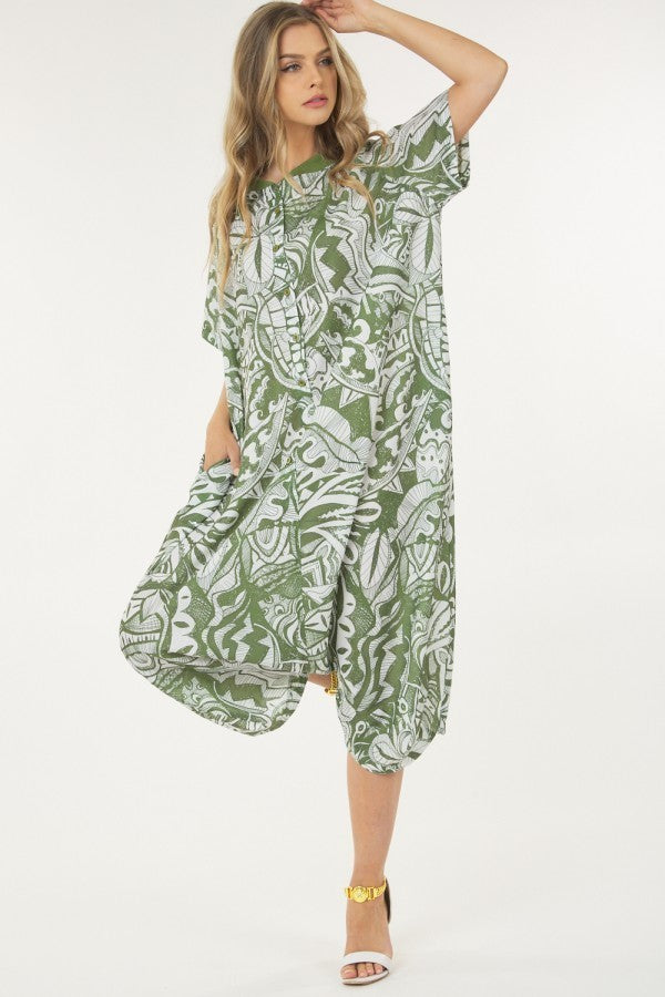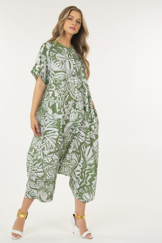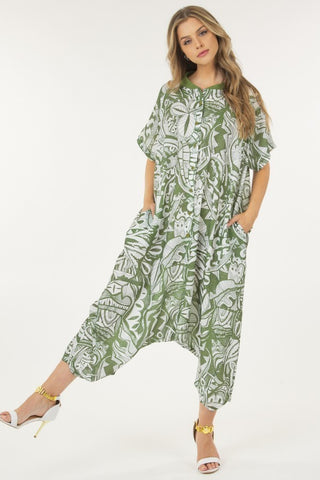 ImportedS.M.LLoose round neck Print Onesie-like Jumpsuit100% Polyester Olive CAR