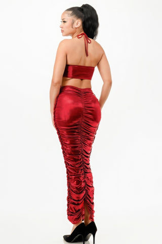 Metallic Rushed Halter Dress - S