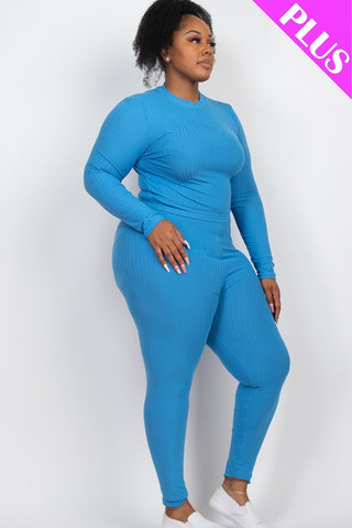 Plus Ribbed Mock Neck Long Sleeve Top & Leggings Set