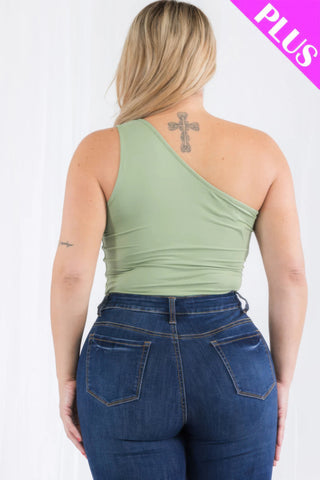 Add the Plus Size One Shoulder Solid Casual Bodysuit in Sage to your cart today and enjoy a stylish, comfortable, and versatile addition to your wardrobe!