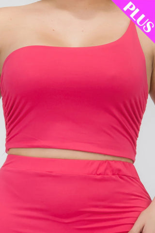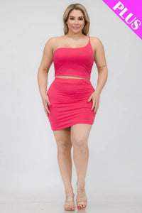 Plus Size One Shoulder Ruched Crop Top & Mini Skirt Set