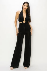 Discover effortless elegance with our Solid Slinky Wide Legs Jumpsuit. This stylish piece combines a sleek silhouette with a modern o-ring detail, perfect for making a sophisticated statement.